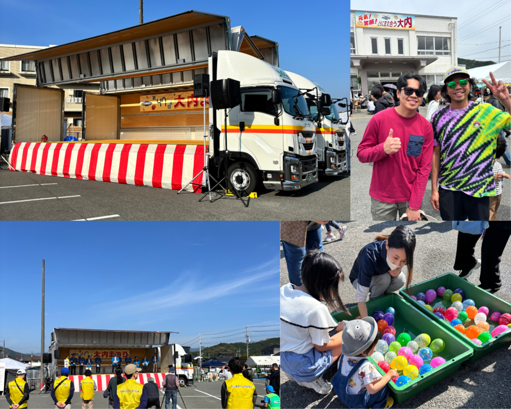 天候にも恵まれ、地域の皆様の笑顔あふれる一日となりました。整備工場の社員2名も会場を訪れ、初めての地域のお祭りの雰囲気を楽しむ様子が見られました。